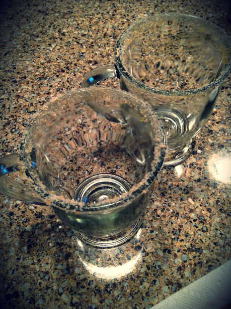 Para evitar el vidrio roto o tazas, necesitará calentar tu vaso o taza llena de agua tibia, y luego vertido hacia fuera. Puede que necesite repetir esto unas cuantas veces para asegurarse de que está lista tu vaso o taza. Mientras se espera el agua a hervir, en un pequeño plato o recipiente, combinar una pequeña cantidad de azúcar morena y granulado de azúcar y mezclar juntos. Borde el borde de su vaso o taza con el corte de naranja y luego sumerja la llanta en la mezcla de azúcar.