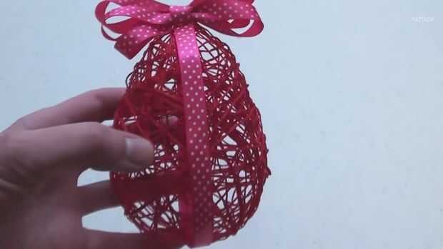 Deje que se seque luego pop el balón y se realiza. Su propio huevo decorativo. Si desea que lo hace se parecen más a un huevo de Pascua, puede envolver un arco alrededor de él.