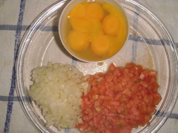 Cómo hacer huevos revueltos con tomates y cebollas (2 / 7 paso)