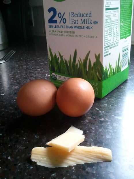 este es un desayuno comer todas las mañanas que es muy fácil de hacer.Paso 1: equipo de Lo que usted necesita:* Un pan* 2 huevos* Una espátula* Queso Cottage* Canela* Avena (opcional)Paso 2: Huevos revueltos Romper los huevos en la sartén y ponga la