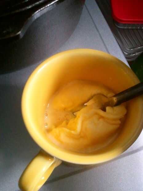 este es un desayuno comer todas las mañanas que es muy fácil de hacer.Paso 1: equipo de Lo que usted necesita:* Un pan* 2 huevos* Una espátula* Queso Cottage* Canela* Avena (opcional)Paso 2: Huevos revueltos Romper los huevos en la sartén y ponga la