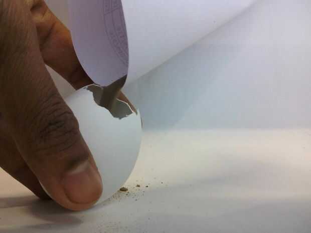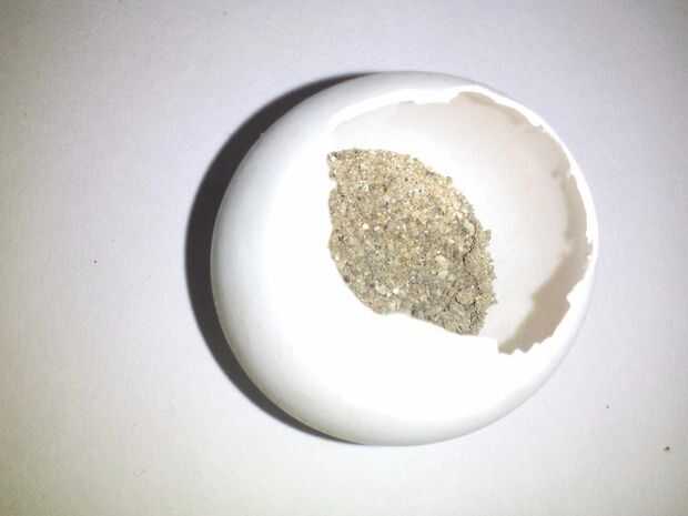 Tome un huevo con la cáscara rota en la parte superior. Poner arena en it(1/4).