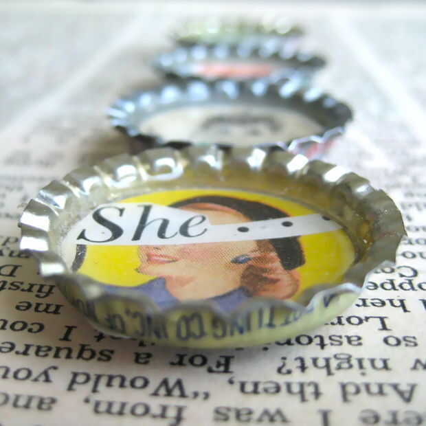 hay un montón de chapas imán tutoriales por ahí, pero casualmente todas vintage de cosas, el amor por lo que llevó a otro nivel con recortes de revistas viejas (vintage). Revistas vintage tienen esos colores únicos, páginas bellamente amarillentas, con divertidas y extravagantes imágenes. Vintage recortes hacen este regalo ordinario en algo único y especial! Y, usted puede recoger un vintage años 50 revista en tu tienda local de antigüedades por unos dólares.