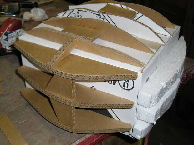 Pensando que yo podría hacer una forma con la cartulina así, hecho extensiones de cartón que estaban pegadas a la caja con cola blanca normal. Que estos se siente durante la noche para que el pegamento se secó, y el vínculo era fuerte. A veces es más fácil hacer este tipo de proyectos en etapas, sin prisa, sin prisa.