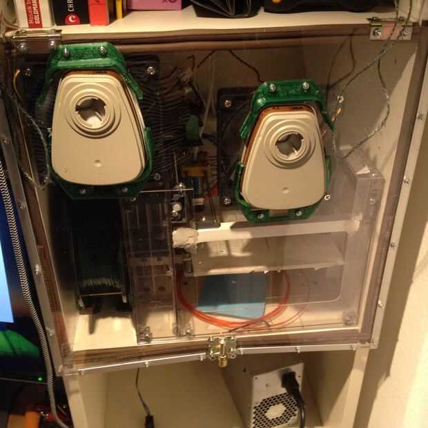 Necesita perforar agujeros para ángulo de aluminio, las bisagras, la cerradura, los ventiladores y se monta el filtro 3D impreso.