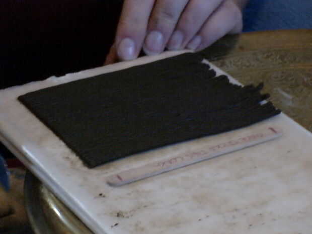Utilice una espátula de metal o un cuchillo de mesa para recortar los extremos. Los recortes pueden poner en la extrusora, enrollados en palos o hechos en conos.