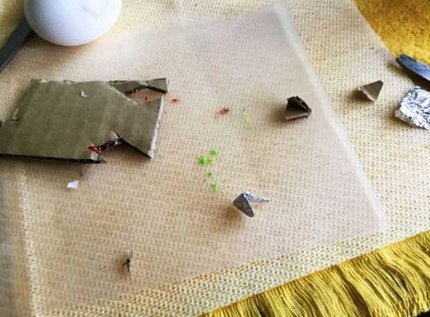 Para hacer los picos de nuestra traza de huevo Vengadores chiclets un pequeño rombo en la cartulina no hagas el dibujo pequeño. Después de remontar luego corte dimond hacia fuera y doblar. Cuando plegable hacen uno de los extremos del pico más largo que el otro como un pico de pollo real el extremo más corto será el pico de la parte inferior. Para terminar nuestro chiklet pico Envuelva el pico de la cartulina y pintar la naranja exterior y el interior negro.