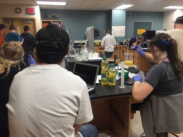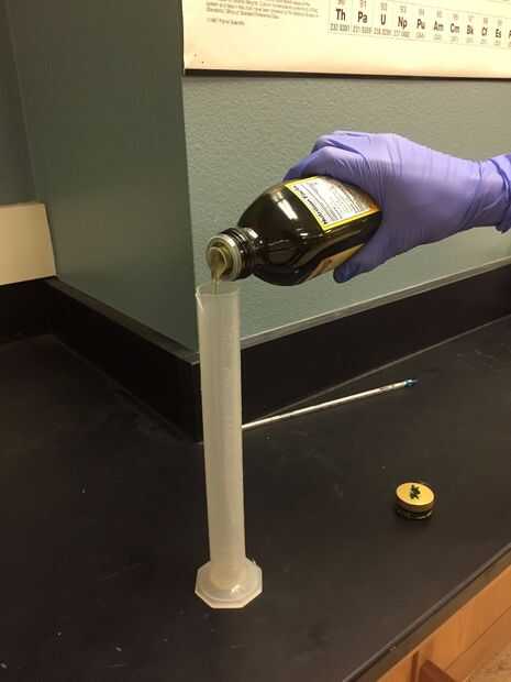 Como se mencionó antes, cada receta de jabón puede ser diferente basada en qué tipo de grasas/aceites se utiliza. Nuestra receta utiliza sólo aceite de oliva para dar a nuestro jabón de una consistencia suave y húmeda. Con el objetivo de hacer.75 libras de jabón, utilizamos 300ml de aceite de oliva extra virgen.