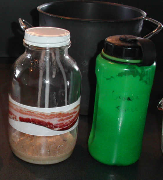 Si vas a ahorrar la grasa del tocino en cualquier longitud de tiempo, Búscate un buen plástico grande o tarro de cristal. Recuerde que debe dejar que la grasa se enfríe un poco antes de verterlo en el recipiente para que no agriete o fundirlo.