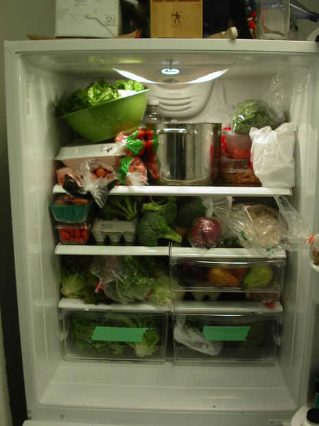 ¿(Revisa el refrigerador el tocino es de enfriamiento de - has visto alguna vez tantas verduras? Espero que el tocino no sentirse uno mismo consciente allí.)