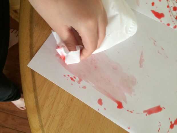 obtener un tejido y limpie el jarabe que todavía es restante, los que se han secado en el papel, simplemente lo dejan ahì hacer no WASH IT OFF. No olvide limpiar el tejido alrededor del área seleccionado, porque muy pronto se convertirá en pintura.