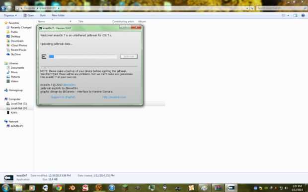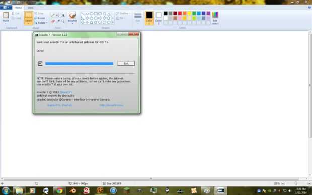 Finalmente. usted vendrá a una pantalla que dice abrir el dispositivo y haga clic en el icono de Evasi0n. Hacer exactamente eso con el icono recién agregado a su hogar. Luego continuará el proceso de reiniciar otra vez. Después de reiniciar el sistema te pedirá que desbloquear el dispositivo, hágalo. Después de debe modificar el rootfs entre otros procesos. Una vez que dice "hecho!" El dispositivo debe reiniciar una vez más. Este tiempo debería ver el icono de la aplicación Evasi0n en la pantalla y debe ser núcleo de lectura... otra vez entre otros procesos. Una vez que termina se debe ver el bootlogo de Apple y entonces debe estar en el dispositivo con un nuevo icono en la página de inicio, Cydia. FYI - Cydia es donde tienes todas las aplicaciones, denominadas paquetes, que dan las capacidades adicionales de un jailbreak.