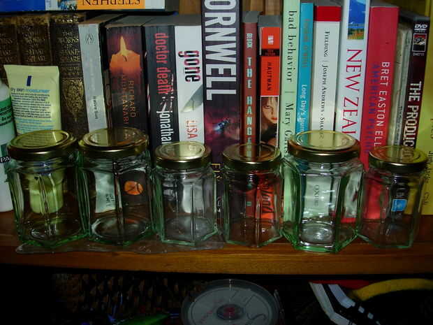 4-6 frascos de mermelada, dependiendo del tamaño; He comprado minas de la cercana ferretería Mitre 10. Usted puede reutilizar sus frascos de mermelada, nada de malo con eso.