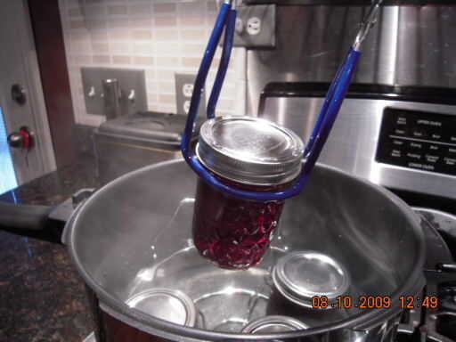 Digamos que vas a procesar para el almacenaje de temperatura. Colocar frascos en una parrilla en la misma olla en que los tarros estaban. Conseguir el agua a 180 grados, un poco debajo de hervir, uso un termómetro si tiene uno. Si no tienes una parrilla enlatada, puedes usar un pequeño redondo rejilla o incluso a una toalla de plato doblado en el fondo de la olla. Caliente los frascos en el agua, sin cubrir, durante 10 minutos. Levantar jarras de agua y coloque en una toalla hasta que se enfríe. La jalea se establece como se refresca. Presiona el centro de las tapas a prueba de sello; Si las tapas quedo abajo, frascos son sellados.