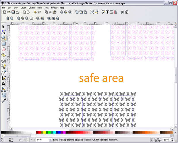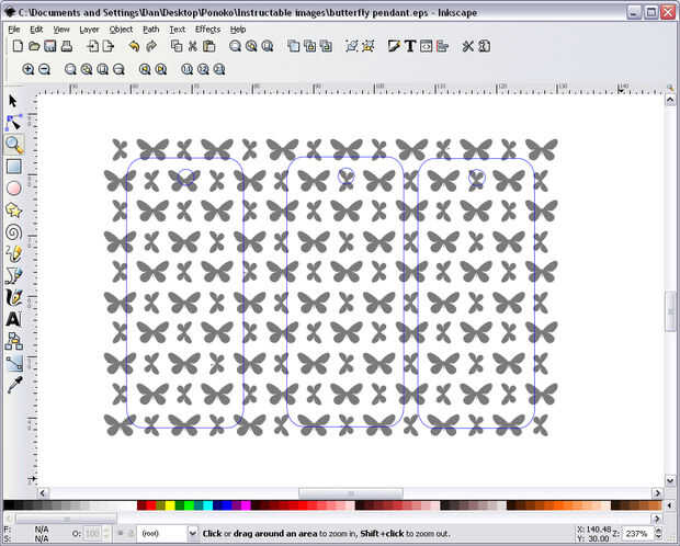 Para el grabado de la trama he eliminado el movimiento de las mariposas y luego los llenó con gris (RGB, 128, 128, 128). Esto dice nuestro cortador del laser para grabar una profundidad media en la superficie.