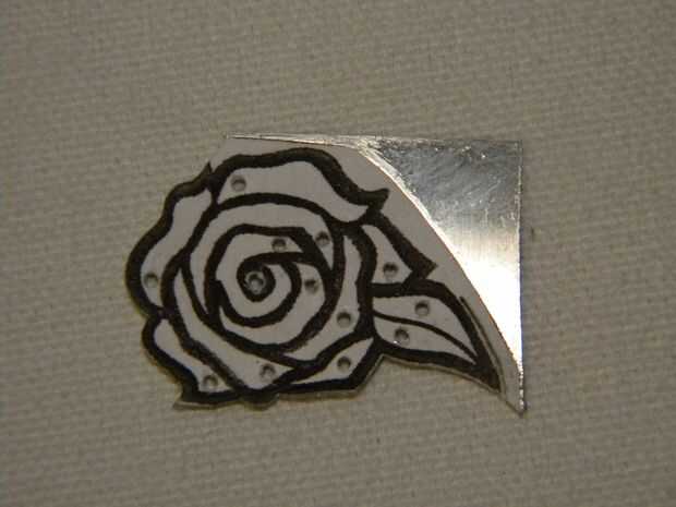 Comencé cortando el exterior de la pieza. Asegúrese de que usted corte lo más cerca de la línea como sea posible sin entrar en él. Usted puede siempre volver sobre él con un archivo hasta que se para arriba si es necesario. Es mucho más difícil agregar material que para tomar distancia. Guardar todo lo que usted corte lejos, si no para la reutilización de reciclaje de chatarra. La pieza más grande que salió, que puedo usar como la base de un bisel. Empiezo con la forma exterior, por lo que estoy quitando las secciones más grandes antes de que la hoja se muy delicada.