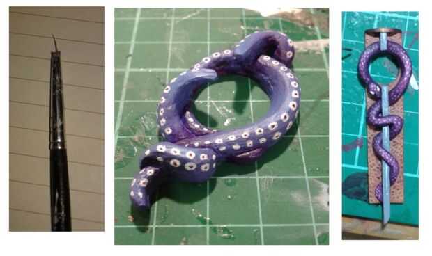 Yo uso pinturas acrílicas para esto y algunos cepillos de nylon. para los muy pequeños detalles, yo uso este cepillo de nylon viejo que tengo que arruiné sumergiendo la punta en algunos pegamento húmedo-___-