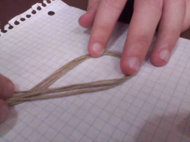 Donde el doblez en el cáñamo, coloque el dedo. Con el dedo en el interior de la tapa en forma de U, agarrar el cáñamo sobrante como si fuese una cadena. Debe la celebración de un circuito simple como el ilustrado más abajo.