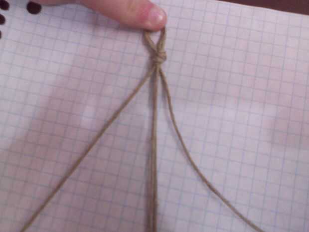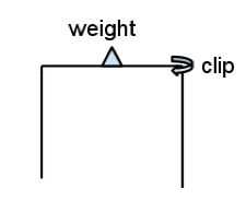 2. el lugar ideal para hacerlo es en un escritorio. El lazo del cáñamo se celebrara hacia abajo con el peso (donde está apuntando el dedo). En el extremo opuesto del peso, fijar el cáñamo hasta el borde de la mesa. Sujeción hacia abajo con un clip de metal binder es el mejor método.