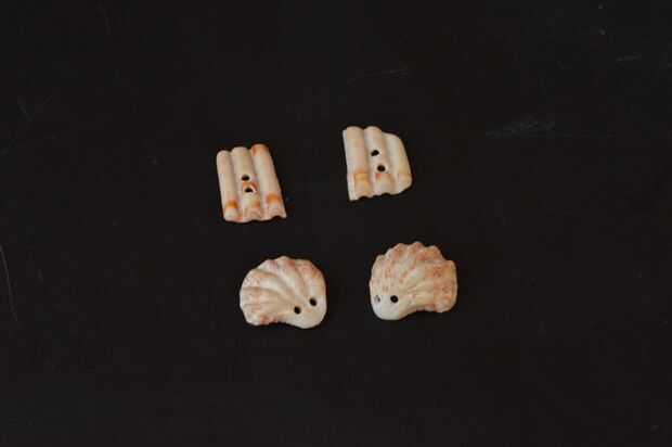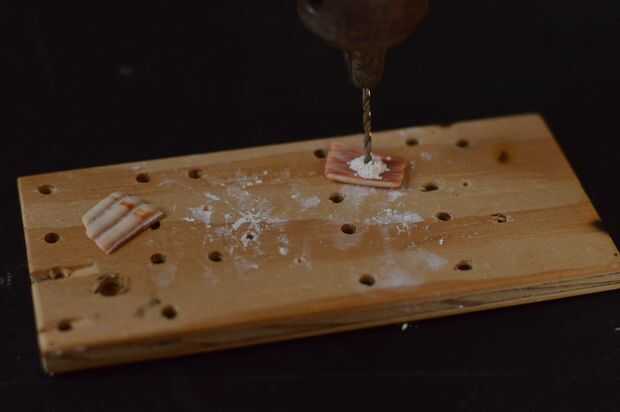 Cada concha tenía dos agujeros perforados en él. Las fotos de arriba muestran la ubicación de los agujeros. Asegúrese de ir lento y aplicar la fuerza mínima, las conchas son frágiles!