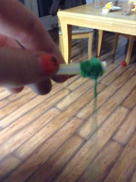 Llevará paja y medir a la lata. Corte para que se ajuste. Cadena de pegamento a la paja. Puede que necesite envolver alrededor de paja para un apoyo extra.