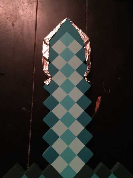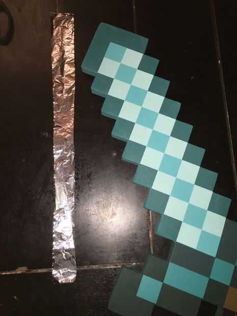 Necesitaremos hacer conductora la espada. Nuestra espada es una espada de espuma simple. Para hacerla conductora y proporcionar un área grande objetivo utilizamos papel de estaño.