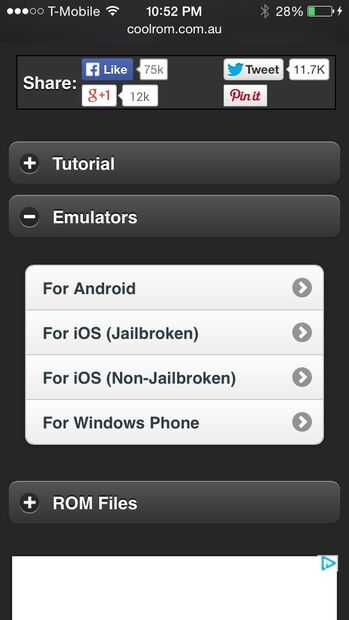 ir a coolrom.com y haga clic en emuladores. a continuación, haga clic en jailbreak no. A continuación, haga clic en GBA.