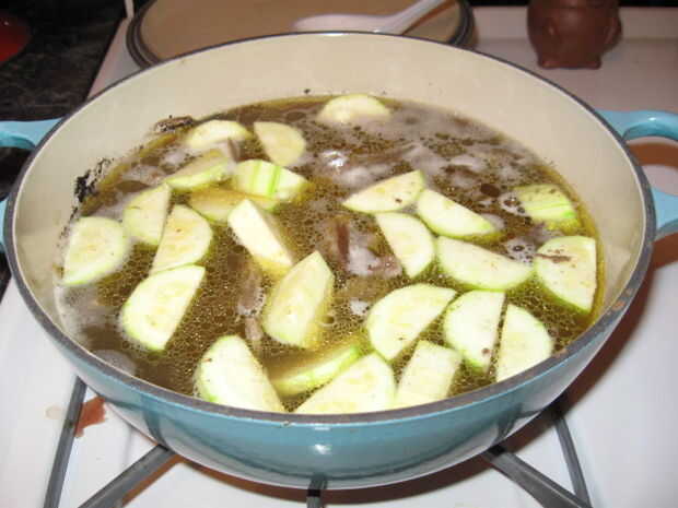 2 calabacín calabaza o 1 calabaza chayote, pelado y luego en rodajas en 1/2 pulgada espesor medias lunas