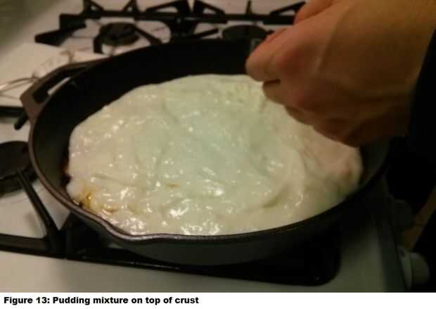 1. Una vez se haya enfriado la corteza en la sartén, vierta la mezcla de pudín restante en la parte superior para formar una capa uniforme, como se muestra en la figura 13.