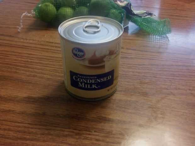 en el espíritu del día de pi, he decidido subir un pie mío. Esta es una tarta fácil y delicioso que mi mamá me enseñó a hacer.Paso 1: ingredientes • A 14 onzas lata de dulce y leche condensada• Cuatro yemas de huevo• Cuatro onzas de jugo de limón• Un
