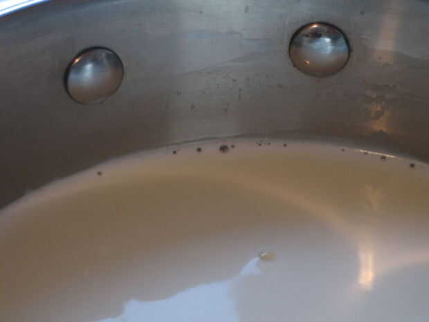 Mantener la leche burbujeante pero no hirviendo y revuelva cada par de minutos - Asegúrese de obtener el fondo todo en la olla, los lados y las esquinas! Puede que necesite activar el calor inferior para mantener este va la manera que tiene que ir. : D