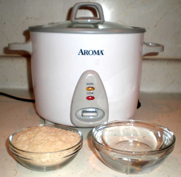 Para comenzar, coloque 1 taza de arroz blanco jazmín y 1½ tazas de agua en la olla arrocera. Mezclar los dos ingredientes para mojar cada grano de arroz. Esto ayuda a garantizar que los cocineros de arroz uniformemente. Enchufe la olla arrocera y pasar de "Caliente" al "Cocinero". El arroz está hecho primero como tarda más tiempo para no cocinar pero necesita ninguna atención adicional después de preparado.