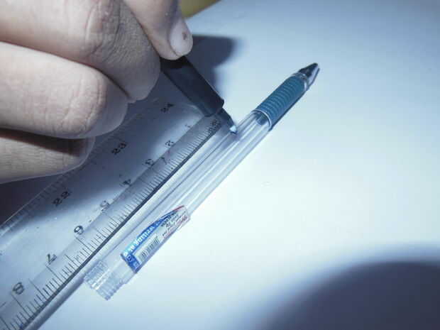 Marca el 6 centímetro/2,36 pulgadas de la regla de la escala.