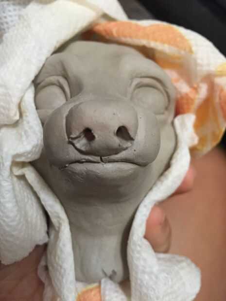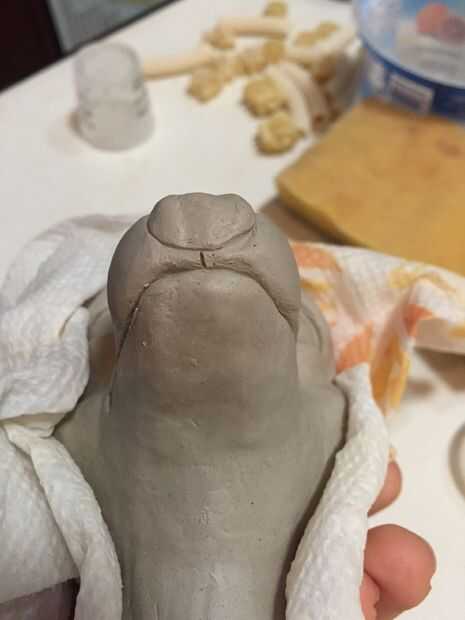 • Me di cuenta de que el hocico estrecho y puntiagudos así añadir más arcilla para darle más dimensión.