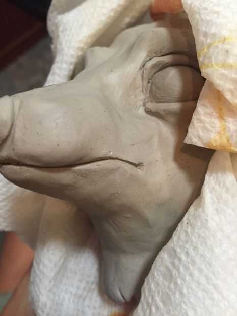• Es hora de hacer el hocico más dimensional. Arcilla se añade a cada lado para lograr este propósito.