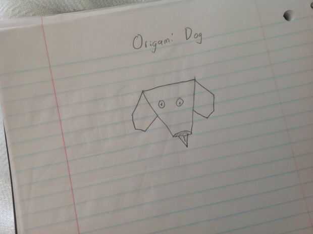 Se trata de una divertida cara de perro de origami!Paso 1: Lo que se necesitaUsted necesitará un pedazo cuadrado de papel (cualquier tamaño) y un lápiz.Paso 2: Doble #1Dobla el papel diagonalmente por la mitad.Paso 3: Doble #2Doble las orejas hacia a