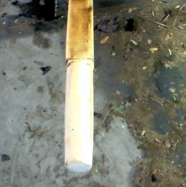 Yo estaba buscando un diámetro de empuñadura de alrededor de 1 1/4 pulgadas. Había refinado de la forma de la empuñadura en mi lijadora de disco. Este paso también alisa el agarre para que se sienta cómodo en su mano y defenderse de las astillas de usando un cuchillo de sorteo.