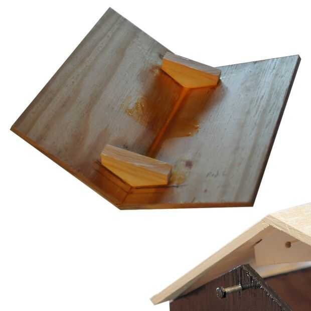 Deje que el pegamento seque y completamente. Luego voltee la casa. Marque las posiciones de dos llaves de madera tal que ambos están dentro de las paredes frontales y traseros de la casa. Tomar el techo de la casa y el pegamento o atornille las abrazaderas en las posiciones marcadas.