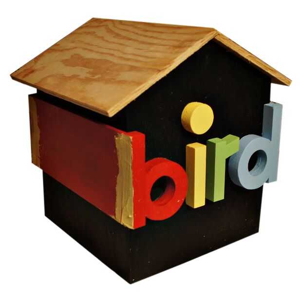 Poner la pajarera en su espalda y la posición el "b i i d" letras en la parte delantera. Las piezas "b" y "d" deben sobresalir 1/4"-3/8" para darle el aspecto que las letras van de la pajarera. Una vez que ha marcado las posiciones, perfore agujeros en la caja donde los agujeros en la "b" y "d" estará, luego pegar las letras en su lugar.