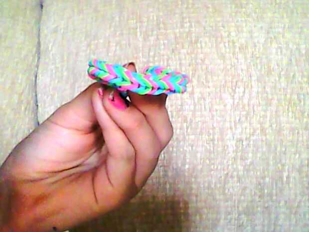 esto es como se verá cuando termine.Paso 1: Primero gire la banda de goma como esta.Paso 2: a continuación, agregue dos bandas más.Paso 3: Luego hacer esto.Paso 4: Luego colocar otra banda.Paso 5:Luego solo seguir haciendo lo mismo entonces parar y c