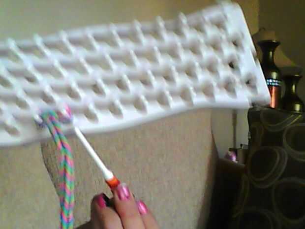 Cómo hacer una pulsera cola de pescado del telar de arco iris con los dedos