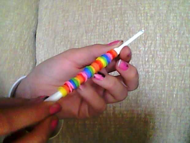 esto es como se verá cuando termine.Paso 1: Primero gire la banda de goma como esta.Paso 2: a continuación, agregue dos bandas más.Paso 3: Luego hacer esto.Paso 4: Luego colocar otra banda.Paso 5:Luego solo seguir haciendo lo mismo entonces parar y c
