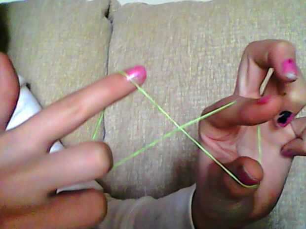 tu banda de la torcedura en los dedos en un ocho y luego coloque en 2 clavijas en su telar, ir a la siguiente foto para ver cómo debe