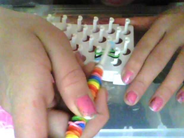 Cómo hacer una pulsera cola de pescado del telar de arco iris con los dedos