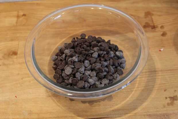 Colocar chocolate semidulce en un tazón microondas y microondas en baja durante unos 3 minutos. Es importante que usted toma hacia fuera las virutas de chocolate revolviendo cada 30 segundos. Chips de chocolate se hacen cuando después de revolver un poco, la mayoría de ellos se derrita.
