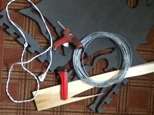Las cosas que usted necesita es esteras de espuma tengo de Lowe por 20$ para 4 esteras, una junta popular de 1/4 de pulgada también de Lowe, alambre, una pistola de pegamento caliente, un rotulador, cinta aislante, una cinta métrica, un retal de piel artificial color marrón, una sierra de calar, pintura negra y plata, una escofina, un Dremel y masilla de madera.