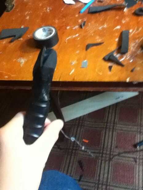 Esto es una parte delicada porque no sabía qué hacer de. Una cosa que probablemente tendrá que averiguar su propia manera para hacer que esta parte es creativa, pero si quieres seguir como lo hice esta es cómo. Primero consigue un trozo grande un poco de espuma de artesanía y corte cinco pedazos. La primera pieza es una tira larga que va todo el camino alrededor de la parte inferior de la manija * recomiendo mirar una foto de la bruja Reyes daga mientras tu lo * siguiente pieza es un tubish lo que va en el bitty. Las tres piezas son las cosas de pétalo de flor. Recomiendo hacer una plantilla que te gusta que dos más de los. A continuación que desea pegar los tres pétalos alrededor del borde del tubo de manera que cada uno de los bordes se toquen. A continuación pegar esa pieza entera hasta el final * Asegúrese de que usted consigue es recto *.
