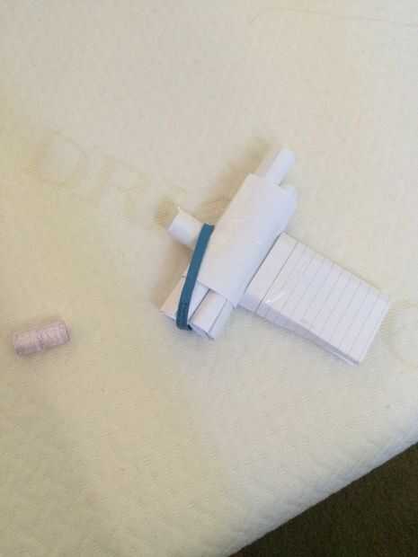 You're done! Ahora la cosa de nuevo e inserte la bala en la banda, punto y mirar dentro del tubo superior y fuego!