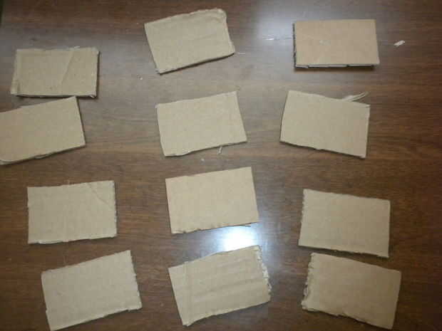 Cortar 12 2 pulgadas x 3 pulgadas de cartulina (o madera contrachapada).