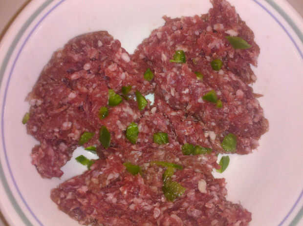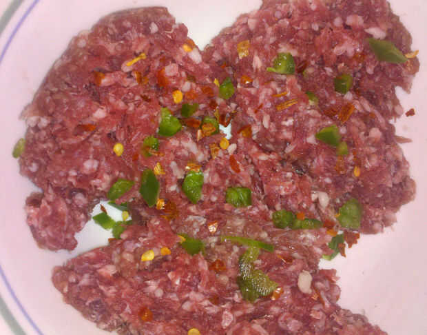 1. espolvorear los jalapeños en cuadritos en toda la carne.